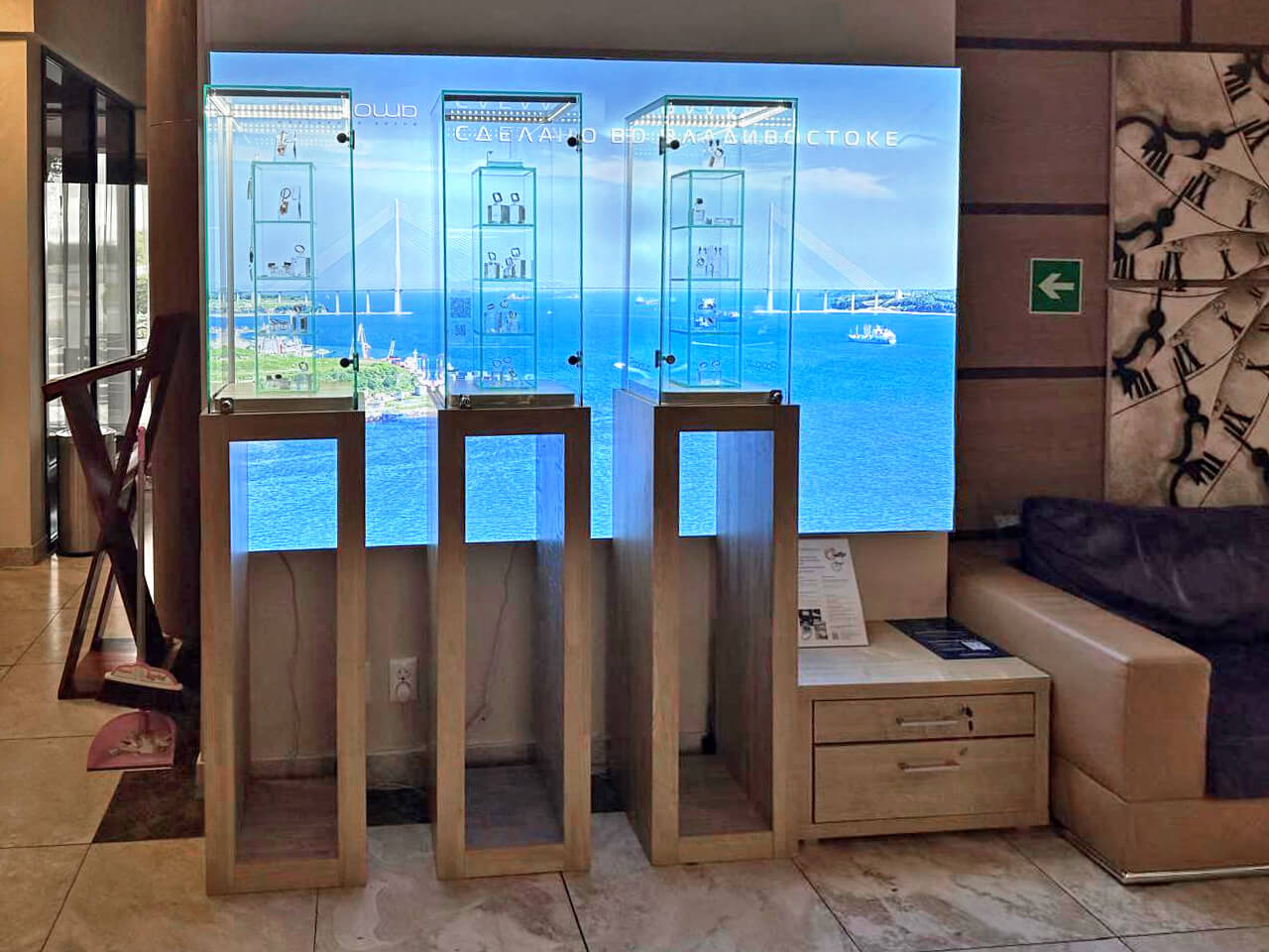 Витрины расположены в ВИП-зале аэропорта (1 этаж, левое крыло, вход с торца здания)