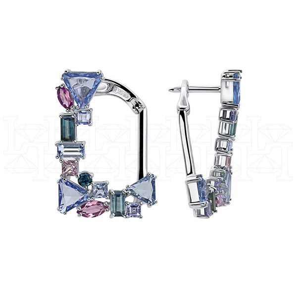 Серьги конго из белого золота с цветными сапфирами Артикул: E10018-15694 (420)