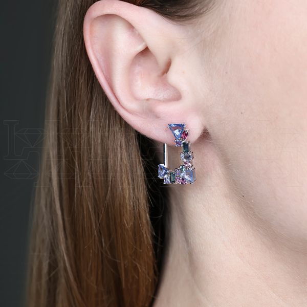 Фото - Серьги конго из белого золота с цветными сапфирами из коллекции "Акварель" E10018-15694 (420)