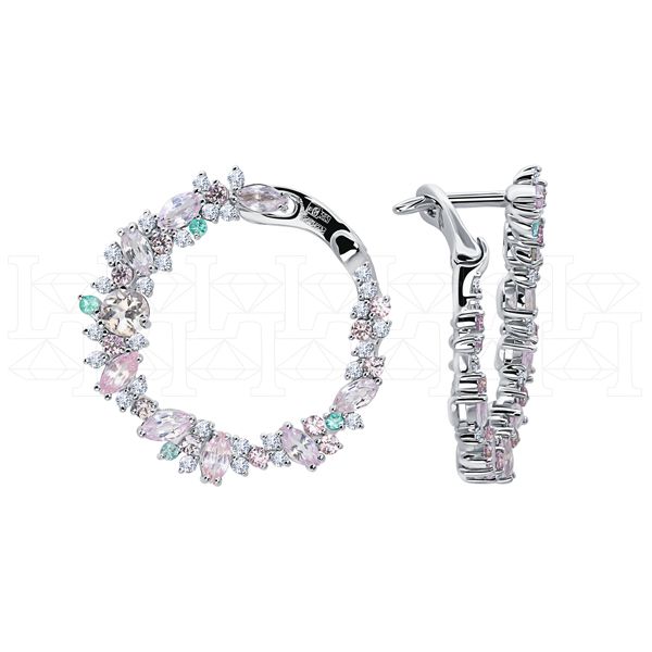 Фото - Серьги конго из белого золота с цветными сапфирами и пикированными бриллиантами из коллекции "Акварель" E10026-15711 (420)