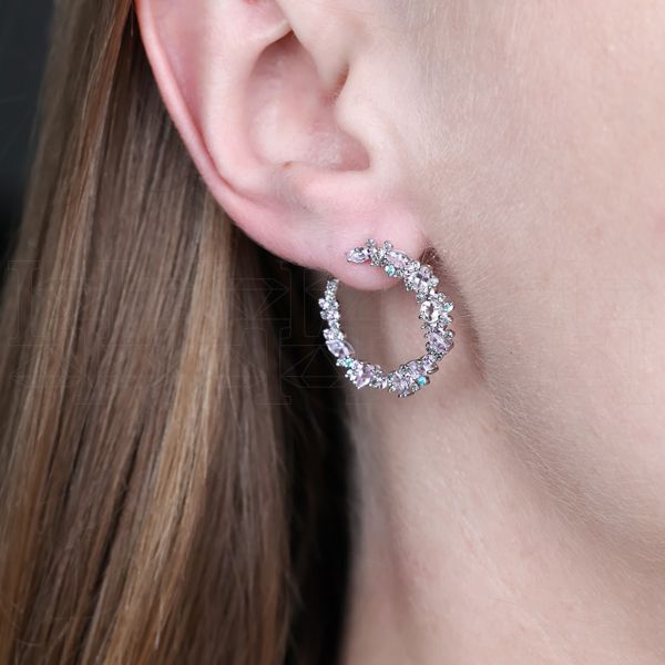 Серьги конго из белого золота с цветными сапфирами и пикированными бриллиантами
