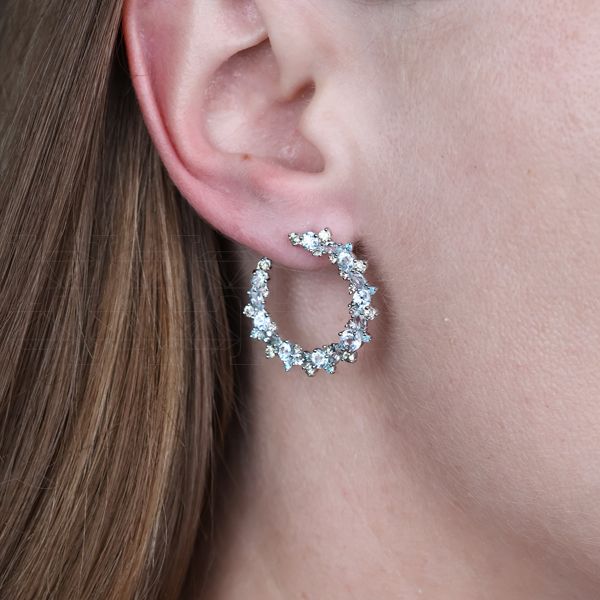 Серьги конго из белого золота с аквамаринами
