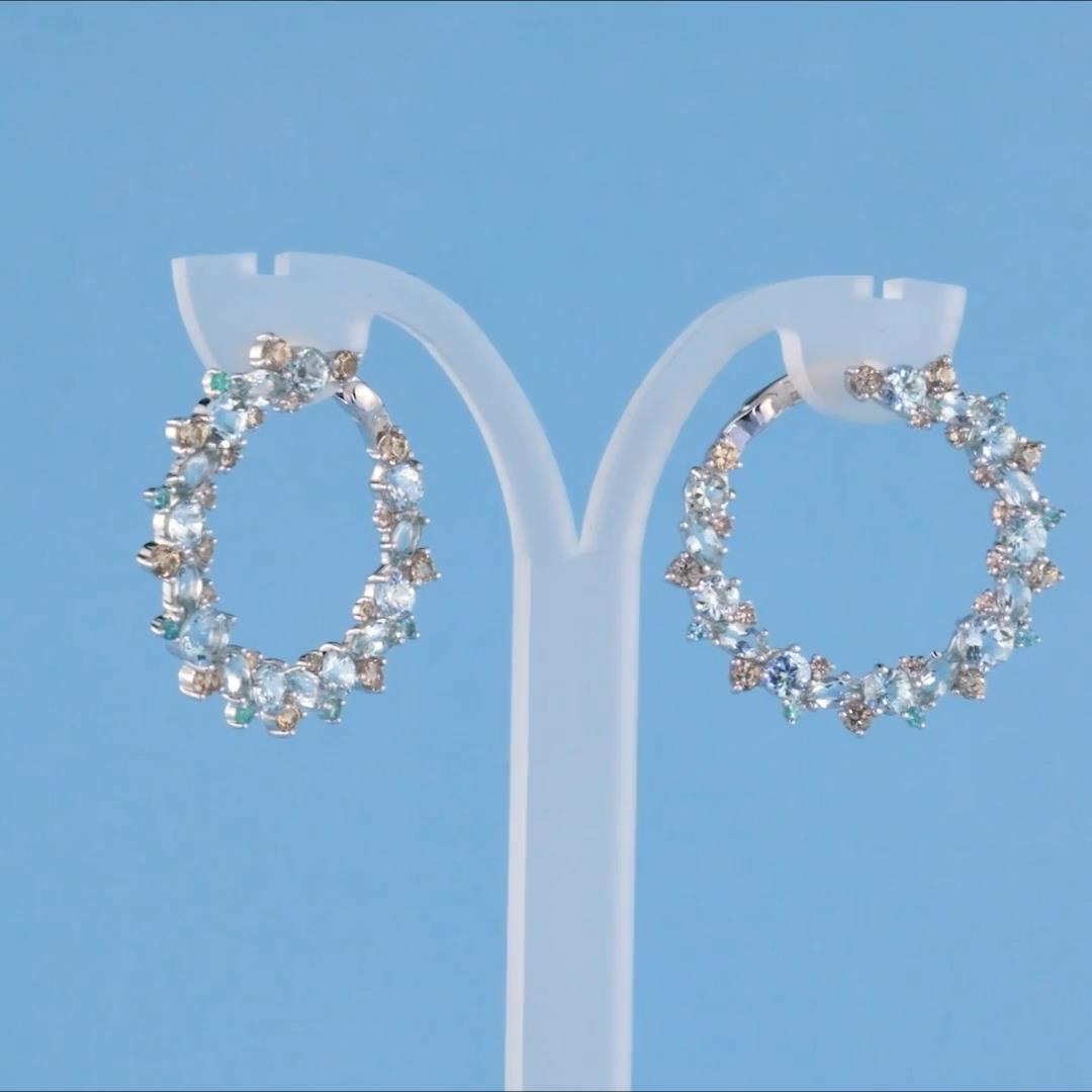 Серьги конго из белого золота с аквамаринами
