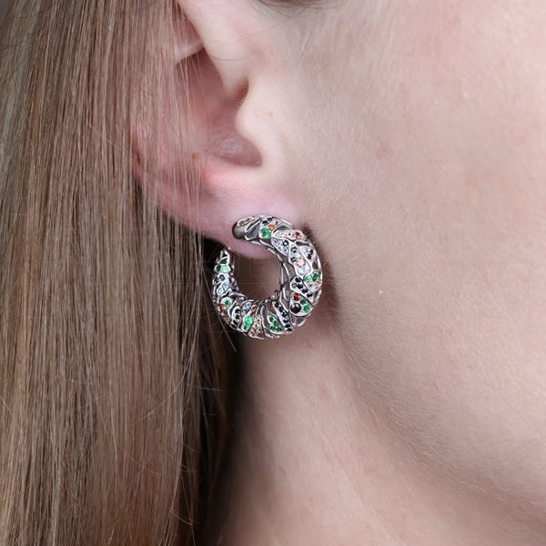 Фото - Серьги конго из белого золота с цветными сапфирами из коллекции "Мутабор" E10071-15864 (762)