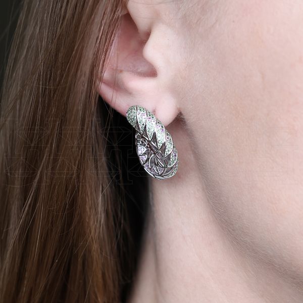 Серьги конго из цветного золота с тсаворитами