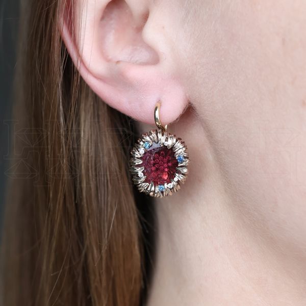 Серьги из цветного золота с турмалином и бриллиантами