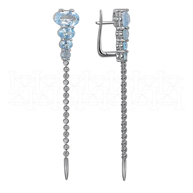 Фото - Серьги длинные из белого золота с бриллиантами из коллекции "Акварель" E7858-10830 (420)