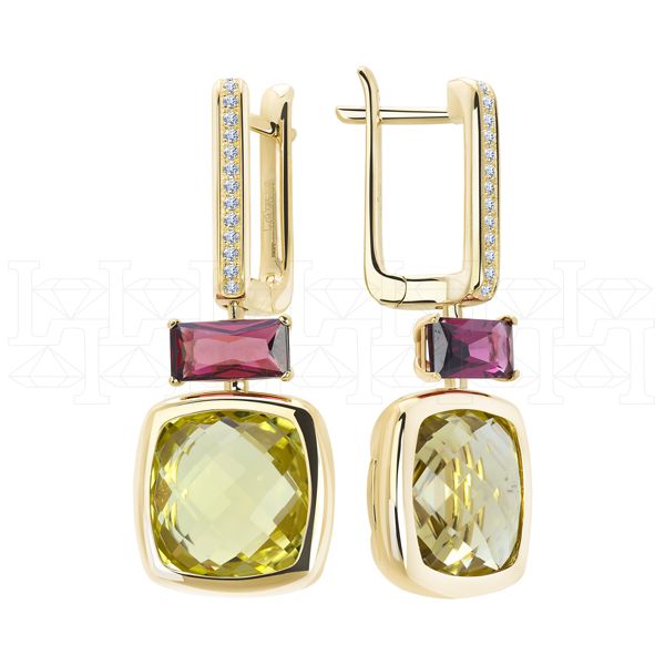Серьги из желтого золота с кварцем и бриллиантами Артикул: E7935-16187 (420)