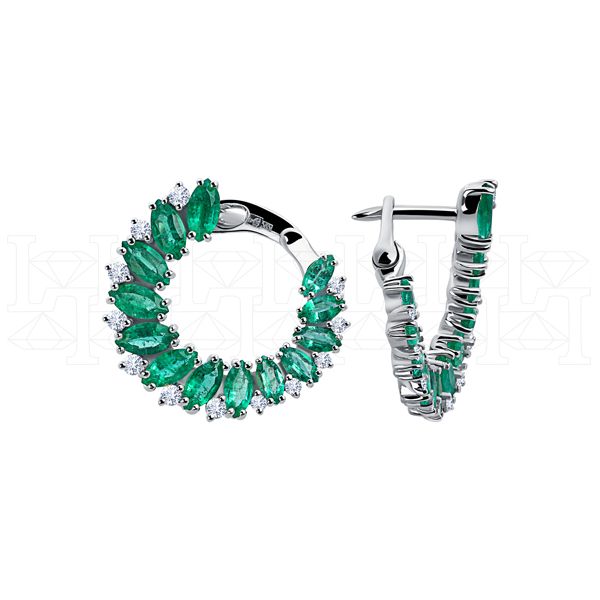 Серьги конго из белого золота с изумрудами и бриллиантами Артикул: E8787-15455 (580)