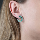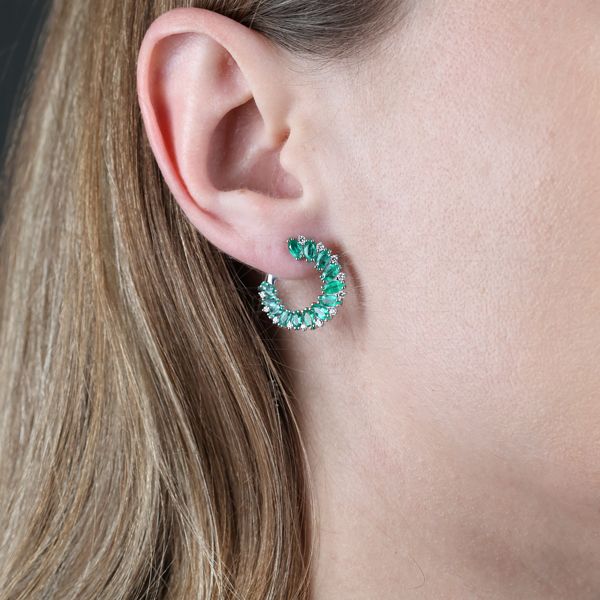 Серьги конго из белого золота с изумрудами и бриллиантами