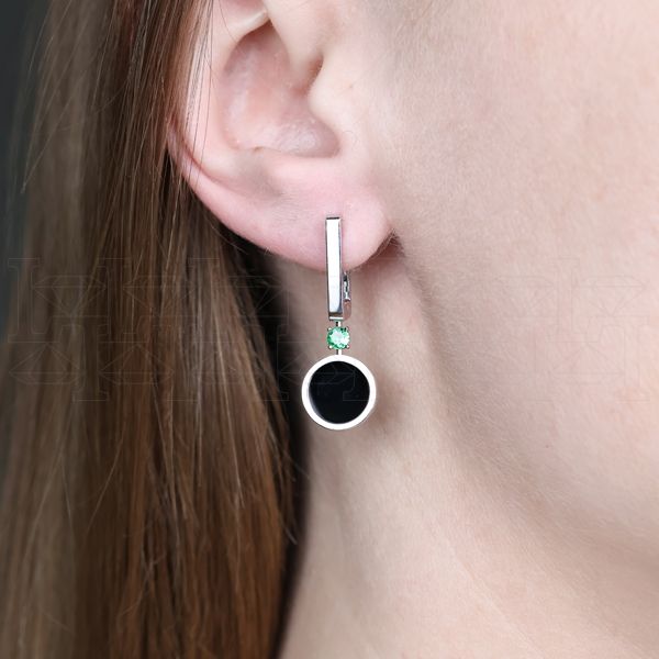 Серьги из белого золота с ониксом Артикул: E9512-14174 (811)