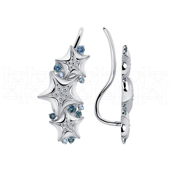 Серьги зажимы из белого золота с цветными сапфирами Артикул: E9920-15401 (453)