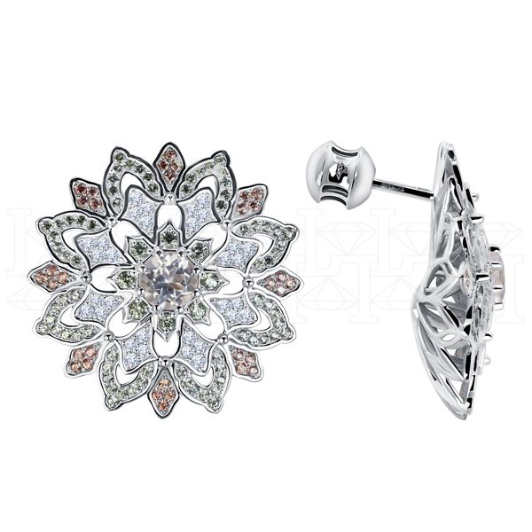 Серьги пуссеты из белого золота с бериллами и бриллиантами