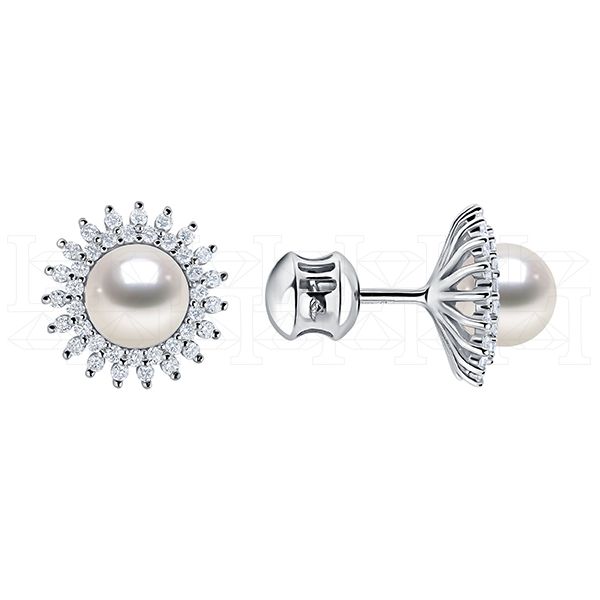 Фото - Серьги пуссеты из белого золота с жемчугом и бриллиантами G2881-14084 (660)