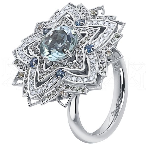 Фото - Кольцо из белого золота с бериллом и бриллиантами из коллекции "786" R10075-15827 (786)