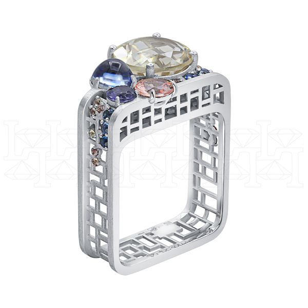 Кольцо квадратное из белого золота с цитрином Артикул: R10229-16171 (451)