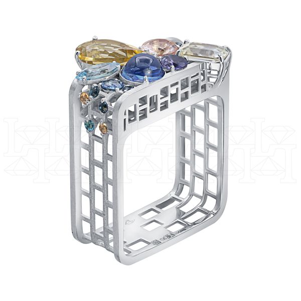 Фото - Кольцо квадратное из белого золота с цитрином из коллекции "Город порт" R10230-16175 (451)