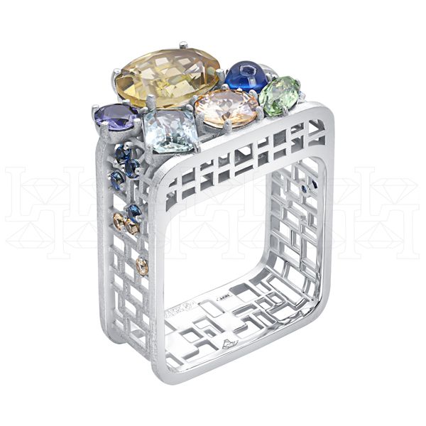 Кольцо квадратное из белого золота с цитрином Артикул: R10233-16179 (451)