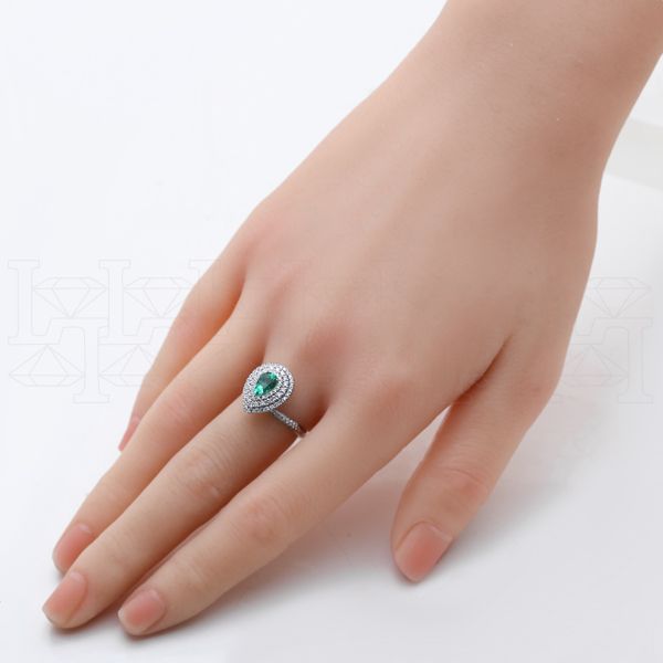 Кольцо из белого золота с изумрудом и бриллиантами Артикул: R10242-16214 (580)