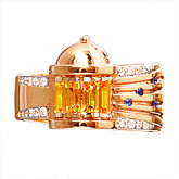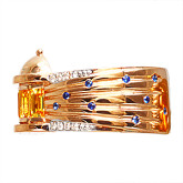 Кольцо из рыжего золота с цветными сапфирами и бриллиантами