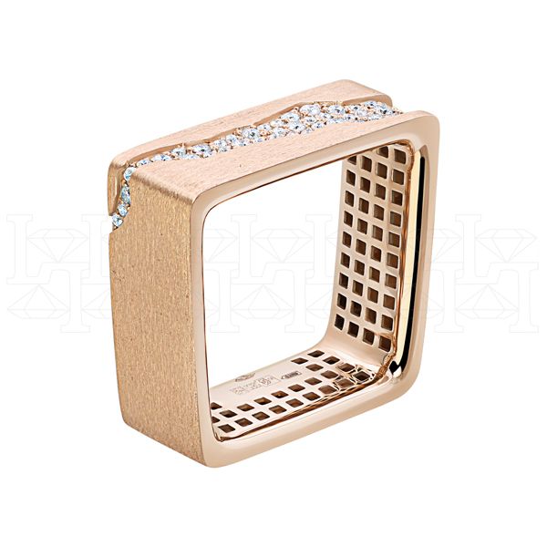 Кольцо квадратное из рыжего золота с бриллиантами Артикул: R4015-15424 (808)