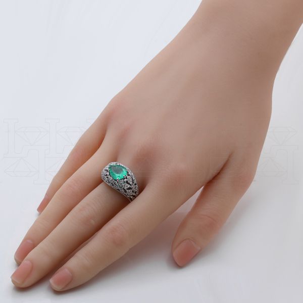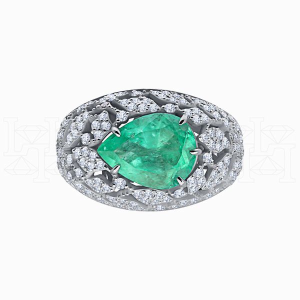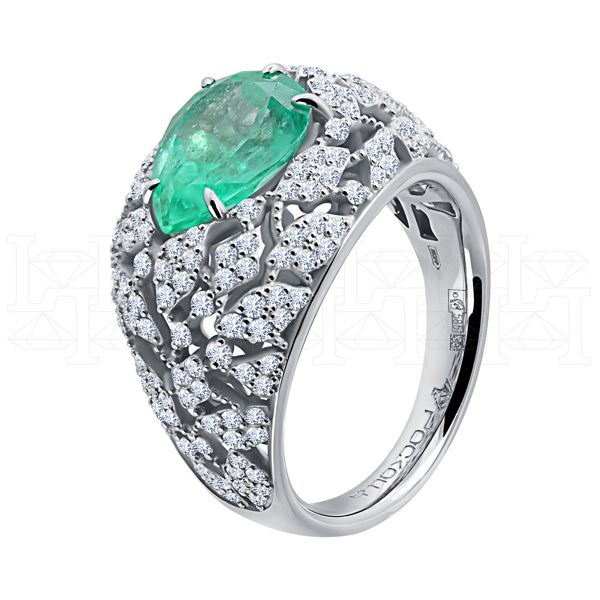 Кольцо из белого золота с изумрудом и бриллиантами Артикул: R9468-15922 (580)