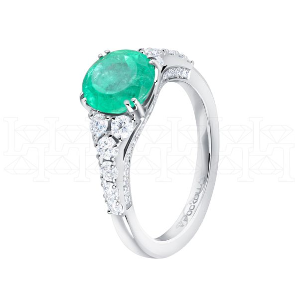Кольцо из белого золота с изумрудом и бриллиантами Артикул: R9499-16213 (580)