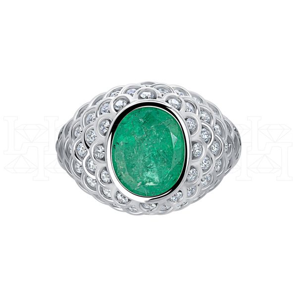Кольцо из белого золота с изумрудом и бриллиантами Артикул: R9950-15506 (580)