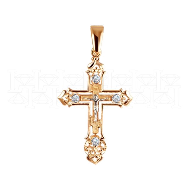 Фото - Подвеска крест из рыжего золота с бриллиантами X3563-4326 (181)